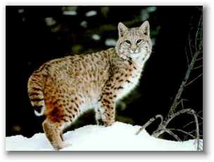 The young are well furred and spotted at birth. They begin exploring at one month and are weaned at two. By fall they are hunting on their own, but remain with the mother for nearly a year. The various calls of the Bobcat sound much like those of the domestic cat, although its scream is piercing. When threatened, the animal utters a short, sudden, and resonant “cough-bark.” It yowls loudest and most often during the breeding season. Humans (who hunt Bobcats with hounds in some areas) and the automobile are this animal’s worst enemies, but predators such as foxes, owls, and adult male Bobcats may attack the young. Populations are stable in many northern states and are reviving in other states where intensive trapping formerly decimated the species. In some states, such as New Jersey, the Bobcat is being reestablished.
