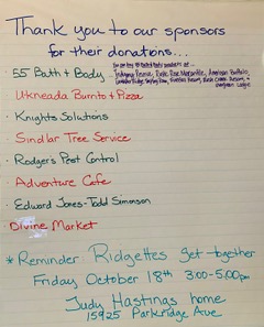 Raffle Prizes donated by Ridgewood Homeowners and local Businesses